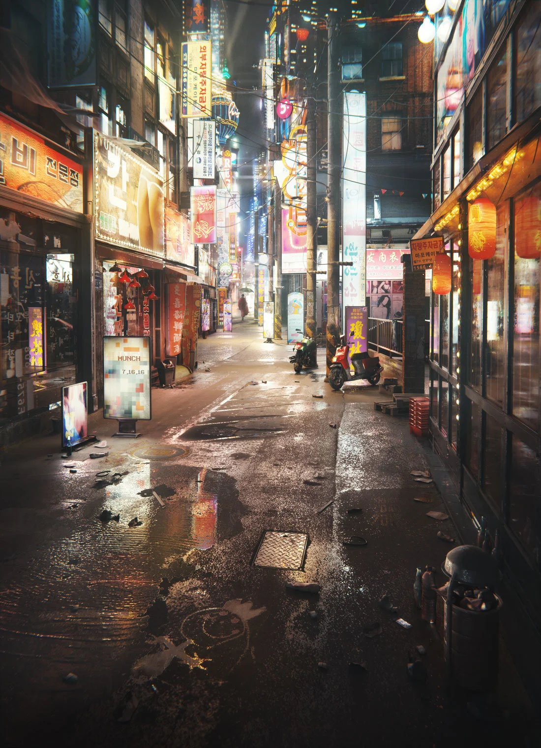 Great use of shadows to mimic the real world. Love the weeds creeping through the pavement too! It's little touches like this that go a long way.