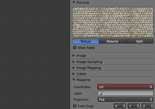 To ensure the texture uses the UV coordinates, select UV from the mapping options drop down menu.