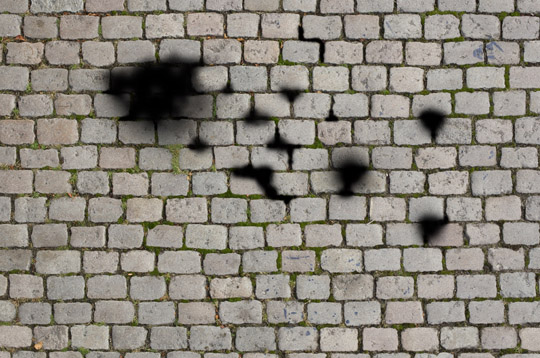 Now comes the tricky part. In order to tell Blender which parts of the ground are going to be puddles, we need to paint over the floor texture with a thick black brush. You can do this easily in a paint editor, such as Gimp or Photoshop. Make sure you paint on a separate layer as you will need to use it again later in the tutorial.