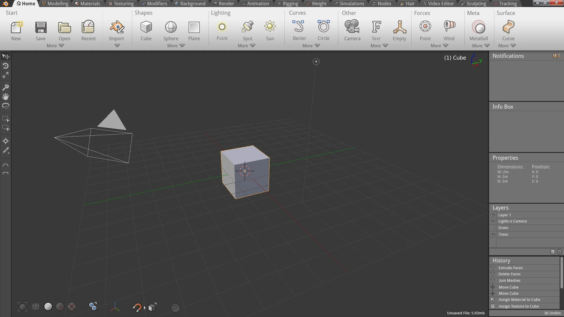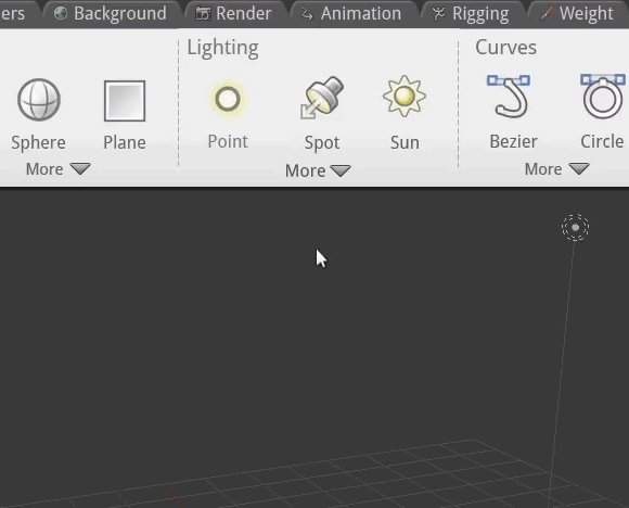 Used to display controls for certain tasks like adding a sphere or using an addon.