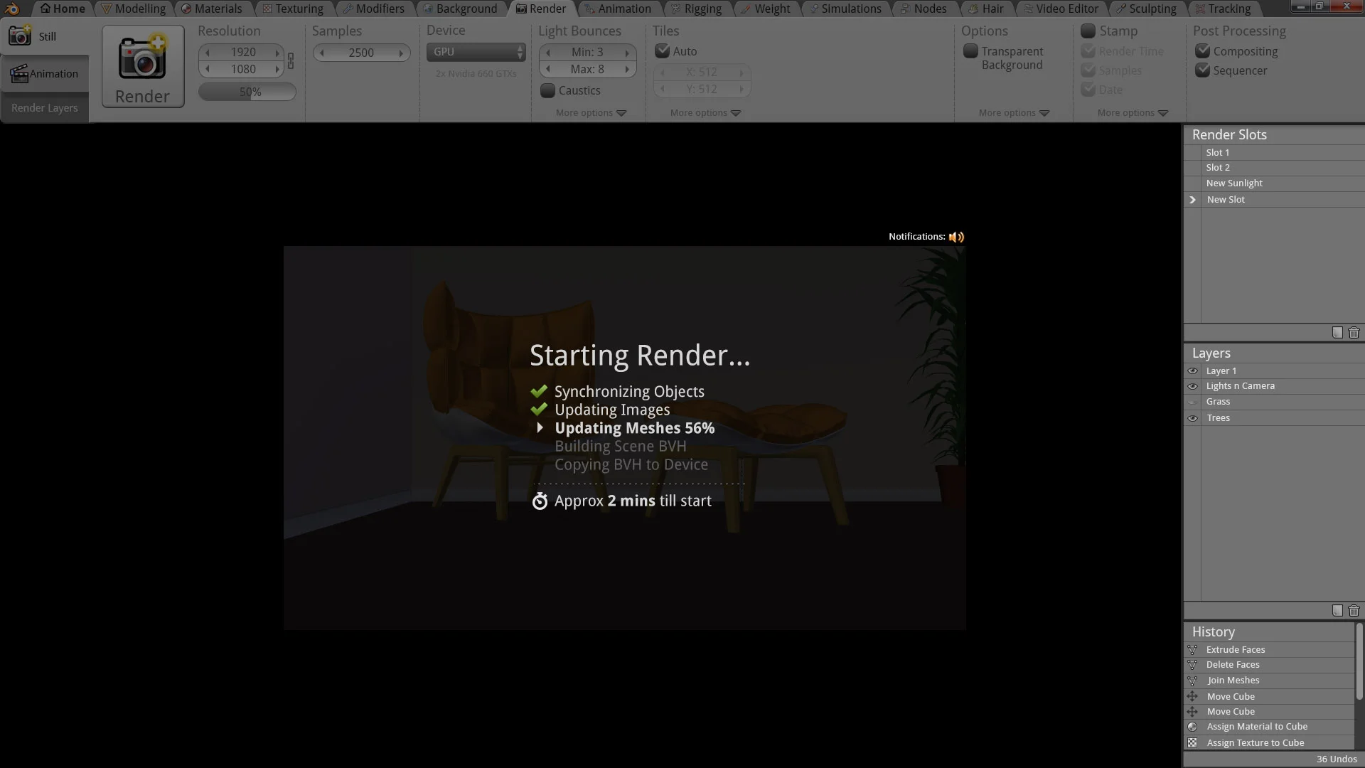 Shows the user what Cycles is doing before it starts rendering, as well as an estimated time till start.