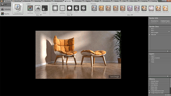 Once the render has finished, the sidetab switches to Post Pro, allowing users to make click and drag adjustments onto their render and see the results in realtime.